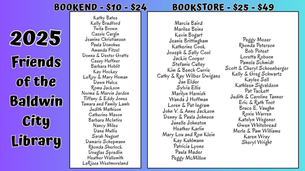 Contact us at FriendsofBaldwinLibrary@gmail.com